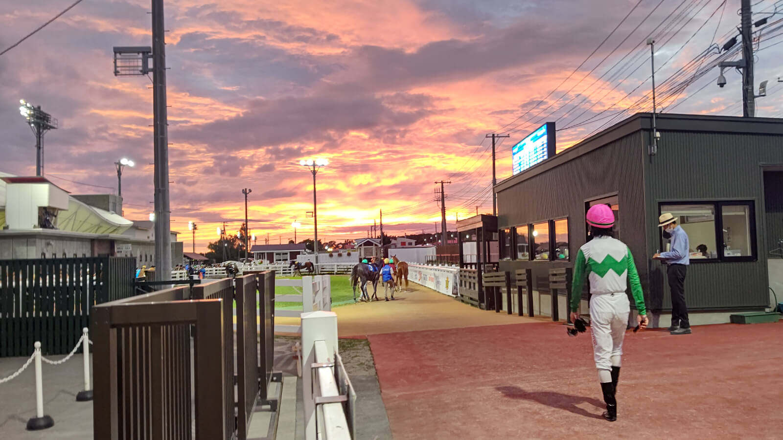 • 夕焼けに染まる優駿たち